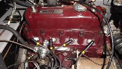 Did a bit for David's MGA today. Free up one stuck main jet, shorten choke cable connection, adjust choke linkage, set fuel mixture, idle speed and fast idle, converting it from sputter to purr. Adjust valves, straighten flange on valve cover install new valve cover gasket. We also gave David's MGB a quick adjustment of choke cable so it would start easily, and fuel mixture adjustment to run well.