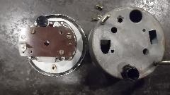 to remove (find decomposed rubber ring), then remove glass (find another rubber ring, almost serviceable), and remove light shield ring. In rear, remove screws securing instrument in the case, and lift off the shell. Determine location of the potentiometer, mark matching location on back of case, then mark and drill a new hole in the case that will be in line with the potentiometer. When the instrument is reassembled it now has access to the calibration potentiometer from the back without removing the case.