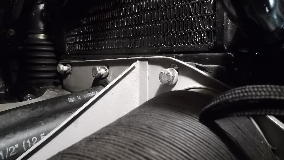 With straight flow path and required bend radius for the hoses, height of the assembly took up all of the space from floor level to the battery cover. We managed to bore a hole for the mounting bolt in the side of the battery box just forward of the battery, and then it fit.
