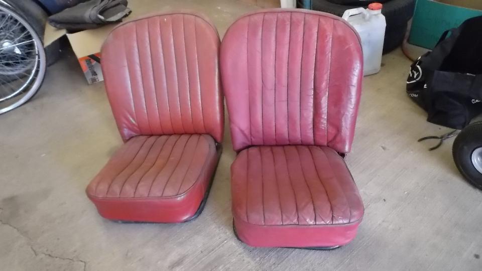 First order of business today was a visit with Doug Nixon in Huntsville, AL. At the club meeting night before I asked if anyone had a front wheel bearing hub for MGA with drum brakes and disc wheels, and this guy has the goods. You might recall from April 19, 2015 when I installed replacement bearing hubs,but for some unknown reason one of those has failed in the same manner with a lose outboard bearing. This local find of replacement parts will help keep my MGA on the road, an will minimize delays in our travels. Then we got to browse around Doug's garage for a bit, checking out his treasure. First up was a pair of very original MGA seats, looking like a matched pair, but having come from two different Twin Cam cars. These only need a little red dye to make very nice vintage seats with wonderful patina.
