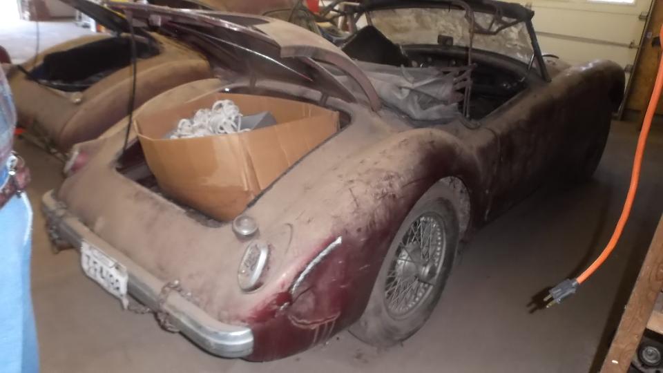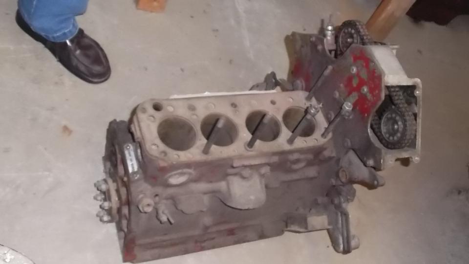 There was this odd engine number attached to an MGA Twin Cam engine. And one spare Twin Cam road wheel.
