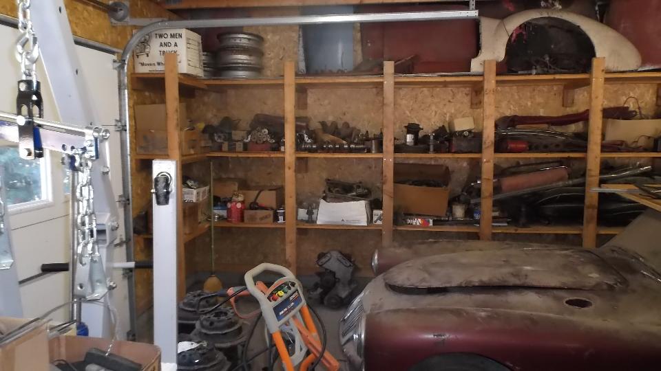 In the back corner there were parts of three or four Twin Cam engines, likely enough to build two complete engines, plus more Twin Cam spares. Twin Cam enthusiasts must be drooling over these photos.