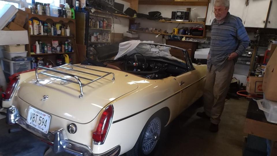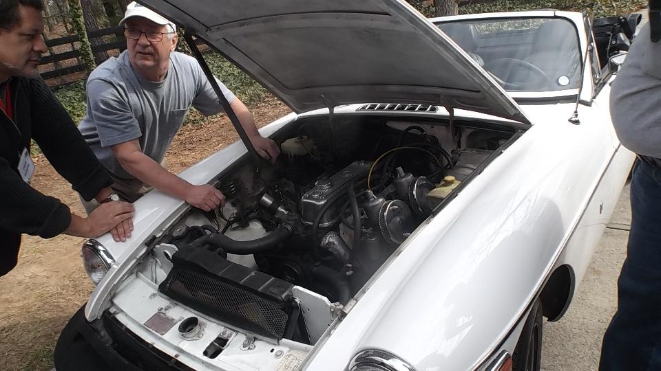 Fourth stop for the day (as if we hadn't done enough yet) was Jack Weiss in Birmingham, Alabama. He has an MGA 1600 with Weber carburetor conversion. It runs well but has a disturbing noise that sounds like a connecting rod bearing knock. But it has 40-psi oil pressure at idle, so this is not a foregone conclusion, still needing further investigation. The car had some body damage once which was not well repaired, and paint over piping that is looking tatty an begging for a repaint. This may seem a little disheartening, but at least the car is in the hands of a caring owner who likes to drive it and will likely fix it.