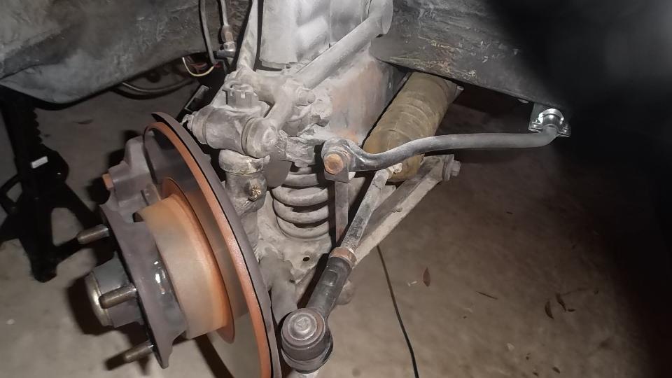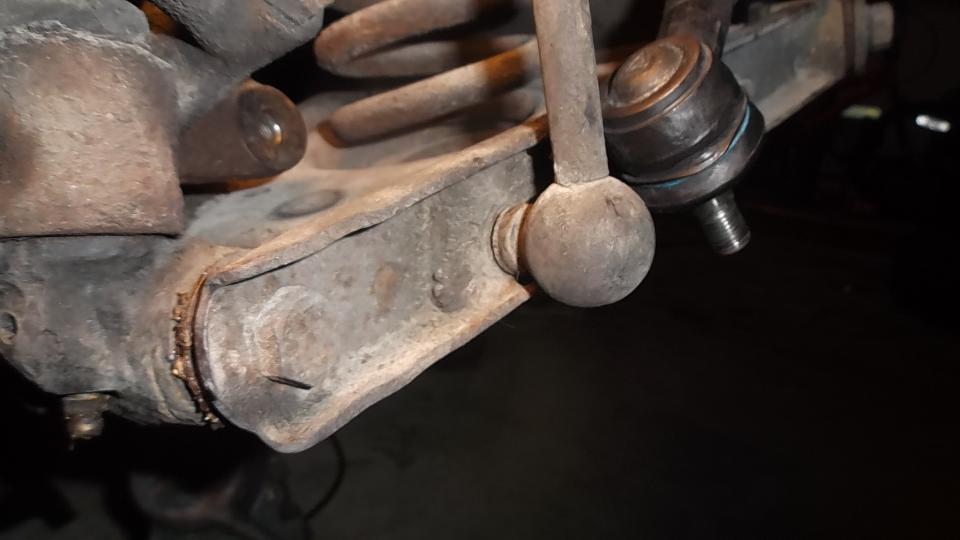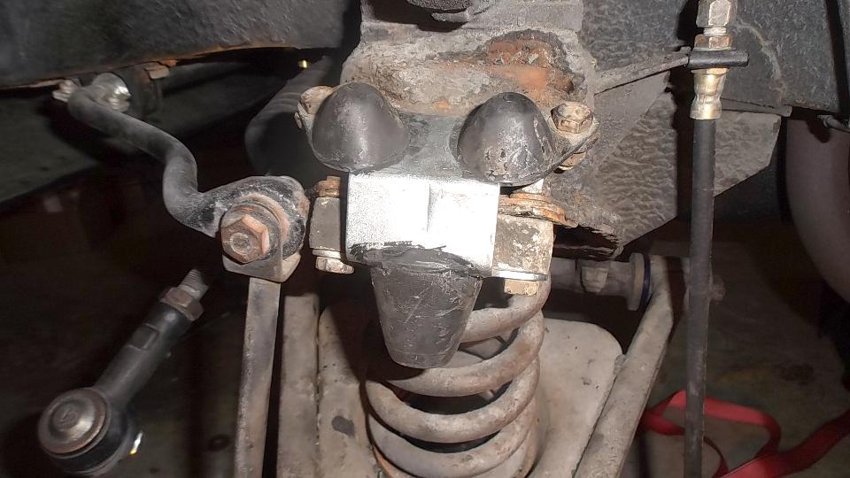 During assembly we found another interesting problem. It looked like the sway bar was bent inward on the left end with the bar end hitting the suspension cross member at the coil spring tower. This sway bar is only 5/8-inch diameter so five minutes with a long jack handle pipe pulled it out enough for proper alignment. We then installed a new bump stop and a new sway bar link.