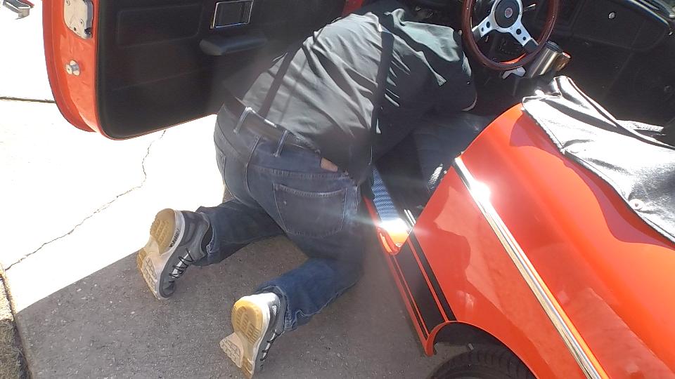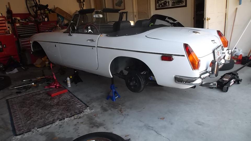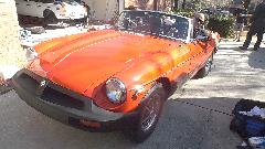 Around mid day Jim Walton dropped in with his beautiful 1964 MGB. I recon this one has been running quite well since I was tinkering with it a year earlier. Since it was nice top own weather today, we sent him off to a parts store to get a bolt for Keith's leaf spring, and to pick up pizza for the gang on the way back.