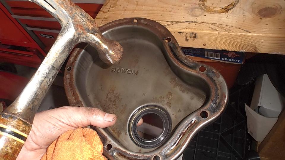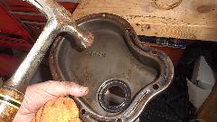 Appropriate size (large) wrench socket makes a good seal driver to install a new seal in the timing cover. Lay the flange on the edge of the bench and tap on the holes to push the protruded metal flat around the bolt holes (before gluing the thick paper gasket to the cover).