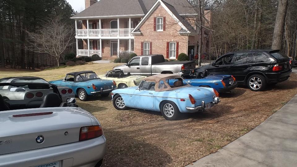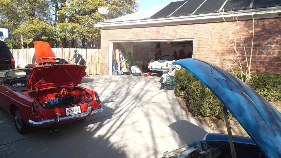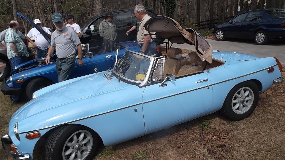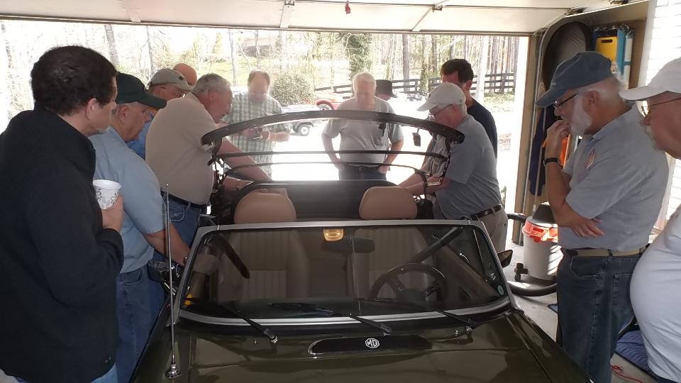Up early today, about 25 minutes north of Cumming (but still with a Cumming address), we drop in on a tech session with the Peachtree MG Registry. There were about 15 club members present, and a bunch of MGB parked in front, as today they were going to install a new convertible top on an MGB.