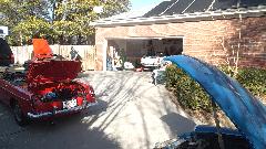 Late in the day Phillip Clark dropped in with his blue MGB. It hadn't been running for a little while, but he took this incentive to install a new fuel pump so he could drive it over to see me (and I'm honored, for sure). For a little while there were four MGB in the drive, plus my MGA and Brian Winter's green MGB in the street (too busy to get that picture).