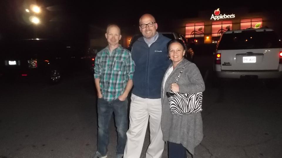 This was a catch-up day, reviewing email and BBS, posting photos and notes, and a start on posting the Chicagoland MG Club newsletter on their web site. One appointment for dinner in the evening. The green MGB belongs to Brian Winter (Columbus, GA), who has been the stand-in-the-front student at the BITV tech sessions. We were holding a space for another MGB, but were surprised by a no-show (sort of). The missing car was the orange 1979 MGB with the adjusted timing chain from the day before belonging to Dave and Tonya Arwood (Smith's Station, AL). Dave and Tonya drove a sport-ute tonight, not sure why, something about no top on the MGB I think. That's Dave in the middle, Tonya right, Brian left.
