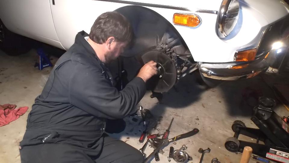 Going to be a second shift operation again today, but I got a little head start in late afternoon. This was the opportunity to change the LF wheel bearing hub on my MGA (not the first time for this operation).