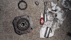 This time the hub around the outer wheel bearing was so badly worn that I couldn't get the bearing out of the hub. End result one smashed finger before I gave up, but the gods of MOWOG should be satisfied with the proper blood sacrifice. After a couple of prior front bearing problems I tend to keep a few spares handy, so the replacement hub was back together in short order, and the nearly new bearing went to the retired iron stash along with the junk hub. Wheel lug studs were transferred from the old hub to the new one to accommodate my thick aluminum wheels. And this time I glued the outer bearing in place with Loctite 620 bearing set adhesive (hoping it won't work loose again). The RF bearing hub seems to be okay so leave that one alone for now and keep the second spare hub for possible future use.