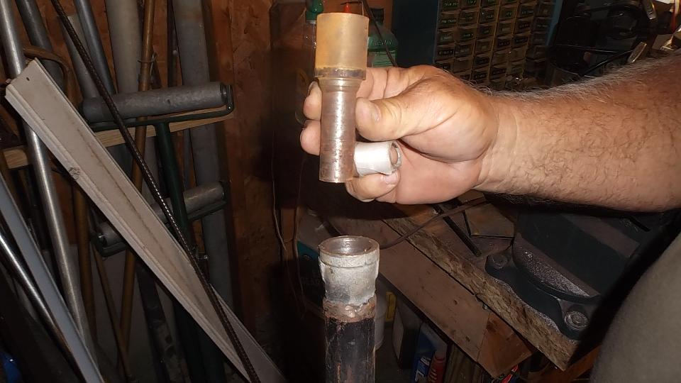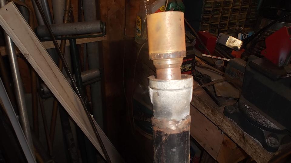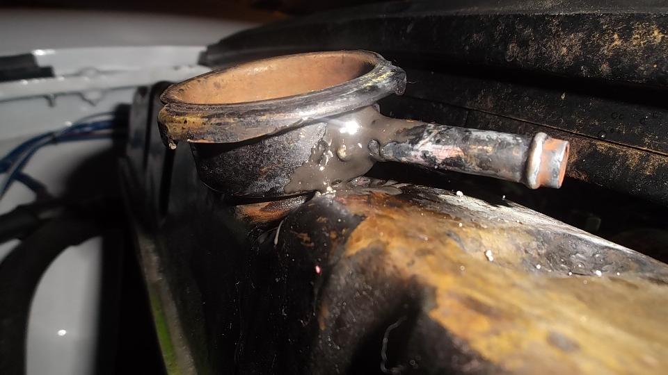 We took a shot at soldering the joint in situ, but with decades of corrosion and some paint on the fittings it was a no-go. In the end we mixed up a dab of JB Kwik Weld to be applied with crossed fingers.