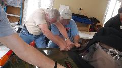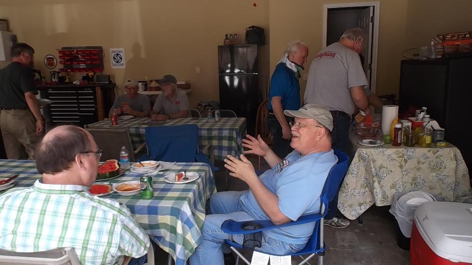 and tech sessions. There was an ongoing slide show with pictures from Saturday's tech session. By end of evening we have a couple more appointments, and possibly a source for a replacement part I need for my MGA. Also an old friend Jim Parsons from close by in Madison dropped in. We were visiting him a year ago. Always nice to see old friends.