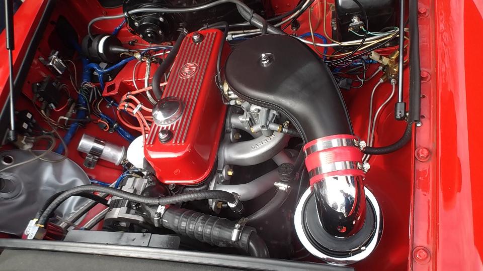 Then it was time for a test drive. I got Dave to run a few steep hills, then get it on the expressway for a bit. It required some encouragement to get him to keep his foot in it to red line in 2nd and 3rd gears. Then the grin was growing from ear to ear as he was finally discovering what an MG really is. He had been driving it for a year and a half with incorrect cam timing, so never had a clue how it should run when properly tuned. I hope he didn't scare his wife too much on the way home.