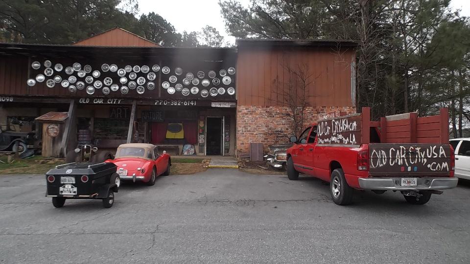 This was a cute way to kill a day. Morning visit to "Old Car City USA" in White, GA. I hope you like hiking, as there are six miles of trails on 35 acres containing over 4000 cars, all are American production, and I believe they are all 1972 or earlier. It used to be a "junk yard" where they sold parts from the cars. Around turn of the century it evolved more into a tourist attraction, a kind of museum where the owner may charge a fee for people who come to take pictures.