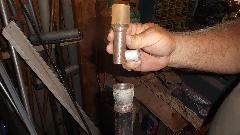 We tried silicone grease with steel tube inside to keep it straight and big squeeze with the vice, but still no go. Solution was easy enough, just split it in the center with a coping saw, and insert half from each side.