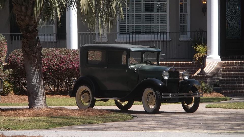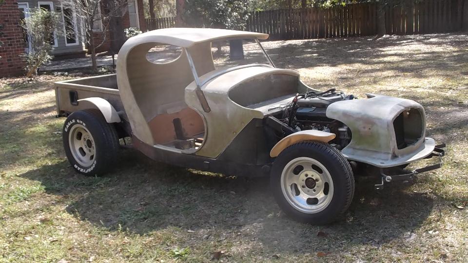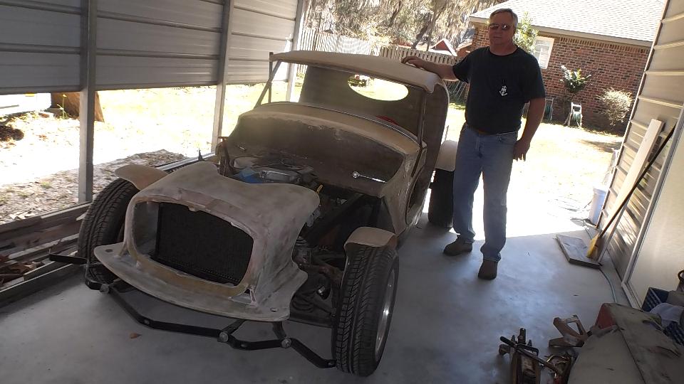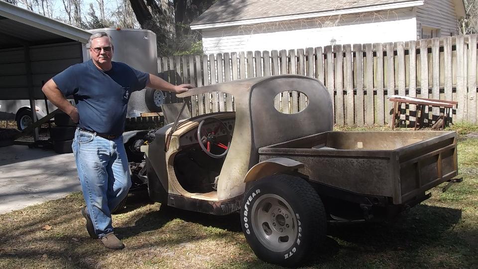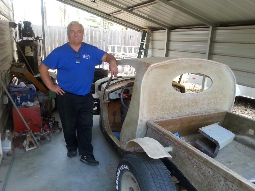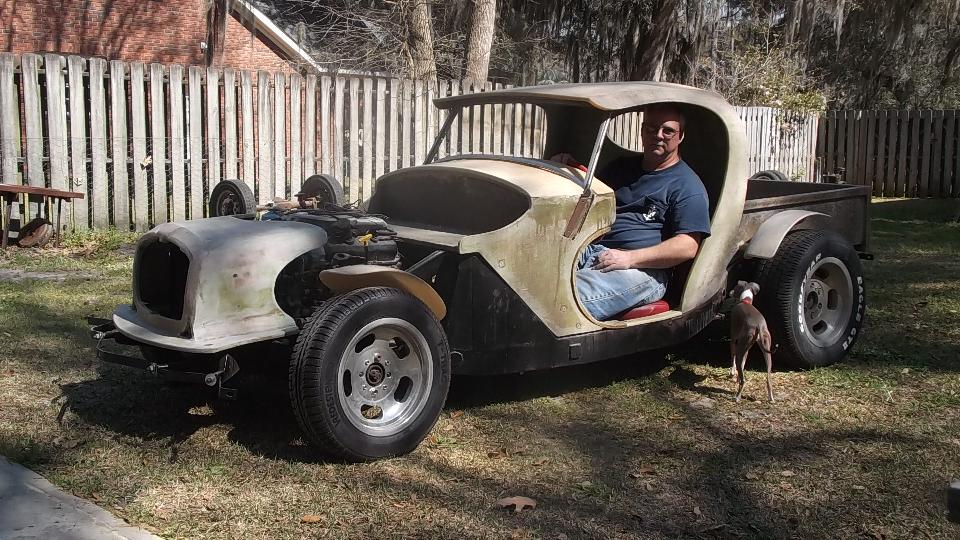 A couple hours more travel this morning, heading to Richmond Hill, GA (near Savannah on the Pacific coast). We were here to visit Frank Chance who is building a "Fun Buggy". This will be a "slightly improved" copy of a vehicle that appear in Mechanix Illustrated magazine in June 1968. The original Fun Buggy was built mostly with plywood on an MGA chassis with very few chassis mods (other than the wheels). Frank is doing some "upgrades" with more modern technology and materials. (The Ford belongs to his neighbor, I just couldn't resist the picture).