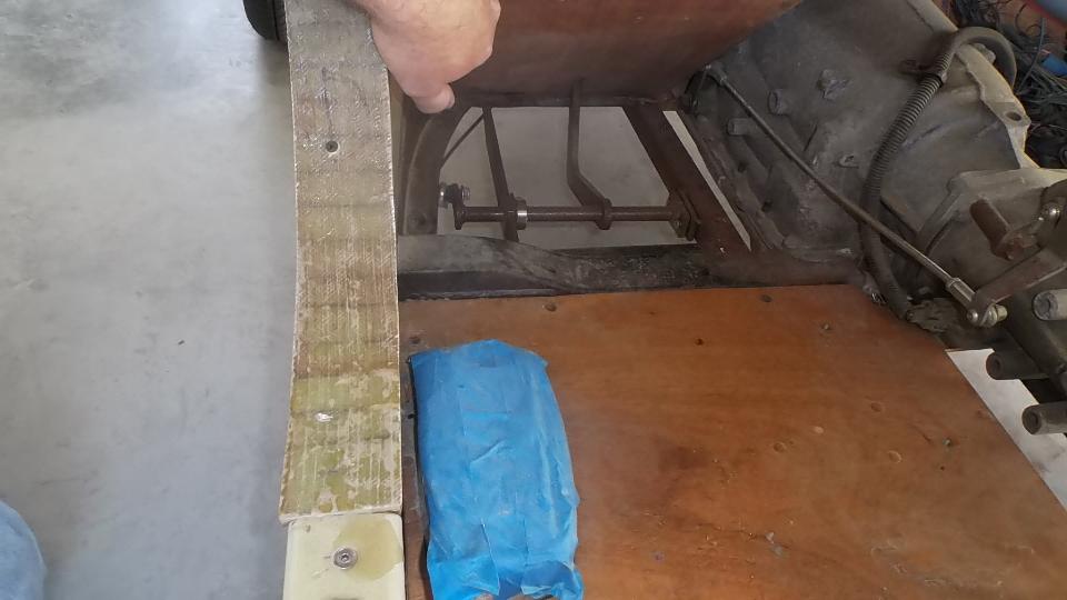 After the dinner meeting we got back to work in Keith's MGB. Here we managed to R&R the left leaf spring to replace all bushings and pads, including the Silentbloc bush in the front eye. That piece gave us fits for a while because of stiff flanges on both ends. If it was soft rubber it may have worked, but being stiff polyurethane there was no way to press it through the spring eye.