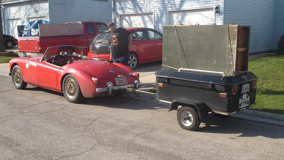 it is loaded with about 200 pounds of tools, power tools, welding tools, grinding and sanding and painting tools, and lots more. It has been sitting idle in my locker for two years, and Seth is about to embark on restoration of his Midget, so maybe these tools can find another useful life. As soon as he figures out where to put things in his limited space, there are also an electric welder, acetylene and oxygen tanks and hoses, a pedestal grinder, a 2-hp air compressor, and a few more power tools that didn't fit in the cabinet. Did I mention it was 83dF in Romeoville today? First time the rag top was down since January in Florida. Beats the snow we had last week.