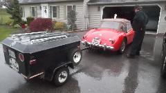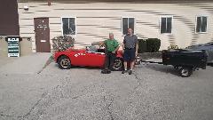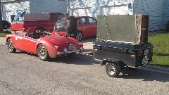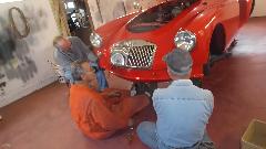 I was busy installing cockpit trim rails and reconnecting lighting wires and debugging a ground wire that was omitted from a body bolt to get the headlights working, then installing the convertible top. I recon the rest of the crew installed everything on the outside that was red or chrome. At the last minute (so to speak) the brackets for side curtains were installed so the car could be somewhat weather tight on a rainy day, and the car was at least roadable. All of the door pockets and kick panels (with about a hundred trim screws) and the door seals ended up in the trailer for future reference. But we were indeed off and running with just one day assembly time.
