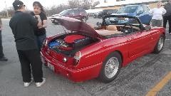 Dino Perez was there with his MG RV8. It had a bit of a problem with a dead battery, but a jumper box got it running easily. Then off to dinner with the crew at Alfies. We figure to spend the night in Naperville.