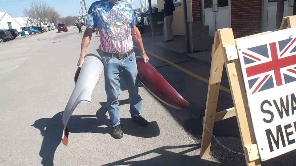 Then we were off to DuPage County Fairgrounds in Wheaton, IL, a short hop of 10 miles, to help with setup for the All-British Swap Meet And Autojumble. As usual, pretty quick operation in 90 minutes or so. Tomorrow these halls will be filled with vendors and shoppers, and the weather promisses to be absolutely devine.