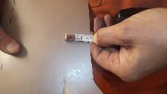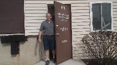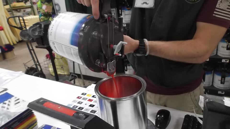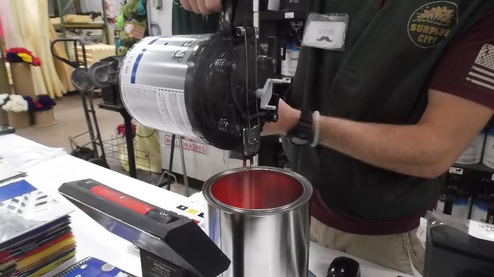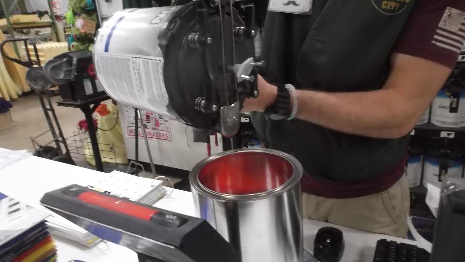 Buying paint this morning. This paint store did not have all of the ingredients to mix the exact color for which I had several paint codes. So we took along a bit of metal from the old door skin as a color sample. Mind you this is eight year old paint faded darker with time. We used the sample to compare with several paint books to find something very close, after which they mixed the color we had chosen.
