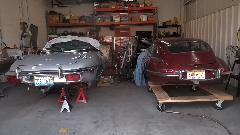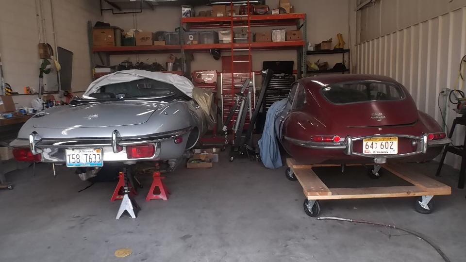 There are a couple of Jaguars in for restoration work, one E-type and an XKE, one engine being rebuilt.
