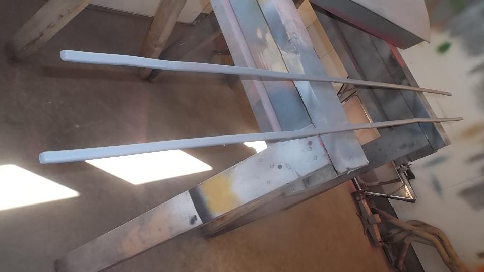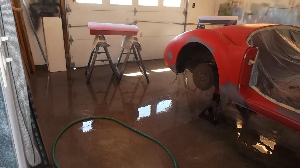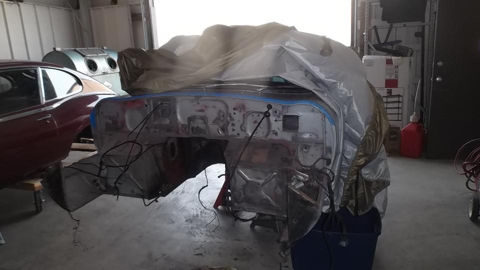 YES!!! Paint day is here! Morning effort to clean and prep the lower body trim strips. Loose parts laid out and hung up for access. Masking paper and plastic taped up.