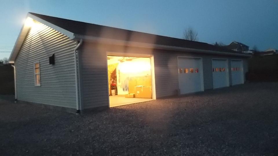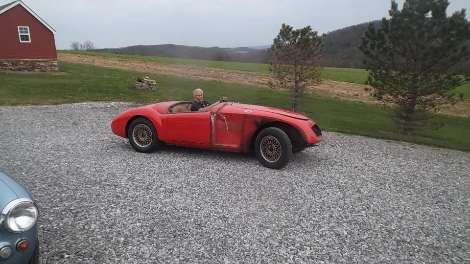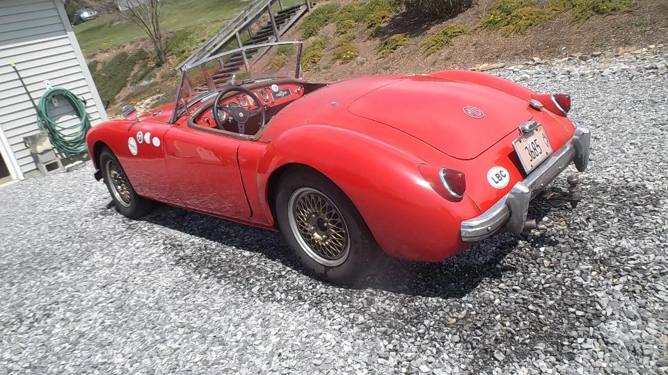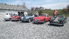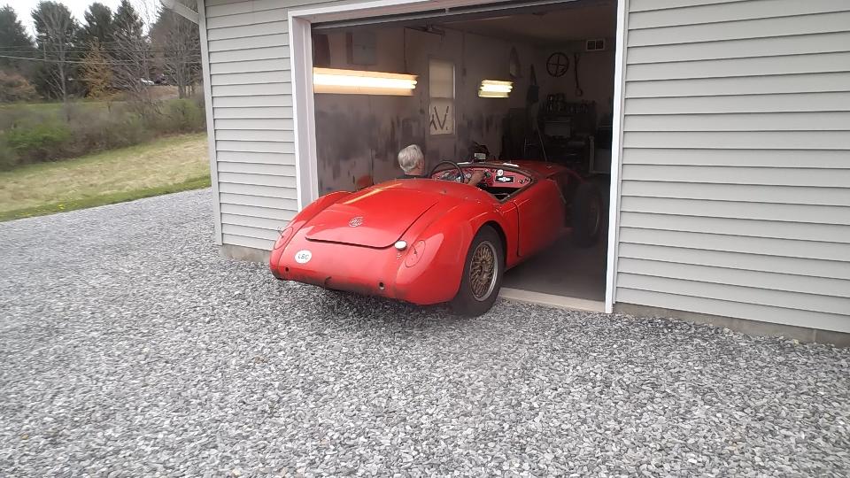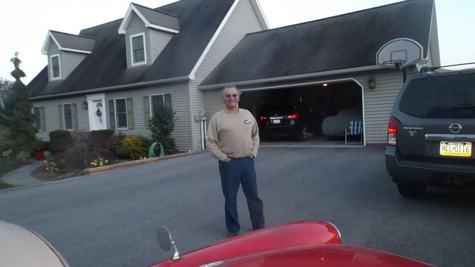 with another 230 miles to go, arriving rural Cogan Station, Pennsylvania before 7-pm (right on schedule, actually). Say hello to Dave Cappa, as we are about to be voluntarily sequestered here for a while to do some "serious" work on my MGA. I took a few photos before dark, then engaged some chat time. That's Dave's very nice AH-3000 with a well known racing history. We didn't bother pulling the cover off the other car, as everyone knows what a Corvette looks like.