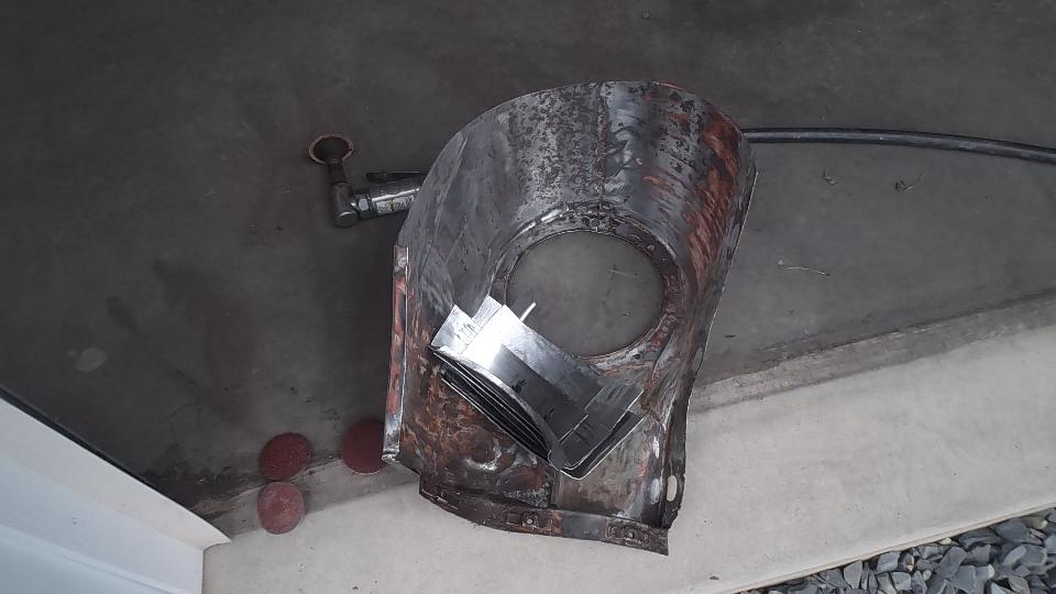 Getting into some serious cut and weld and metal forming today. After cutting away rusted metal in the LF fender, the piece of donor fender from Francois Gay in Saint-Jean-Sur-Richelieu, QC, Canada is looking more appealing. Let's try a section.