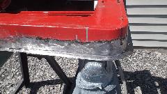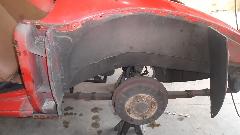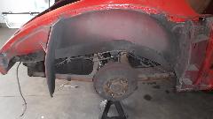 We knew the LR fender had a small bite on the bottom from running over a parking curb. This required a bit of hammer and dolly work, and a little weld to delete a crack. While Dave was doing this he found another problem hiding under a bit of filler, where the bracket to attach to the rear splash guard had a less than desirable weld needing some touch up.