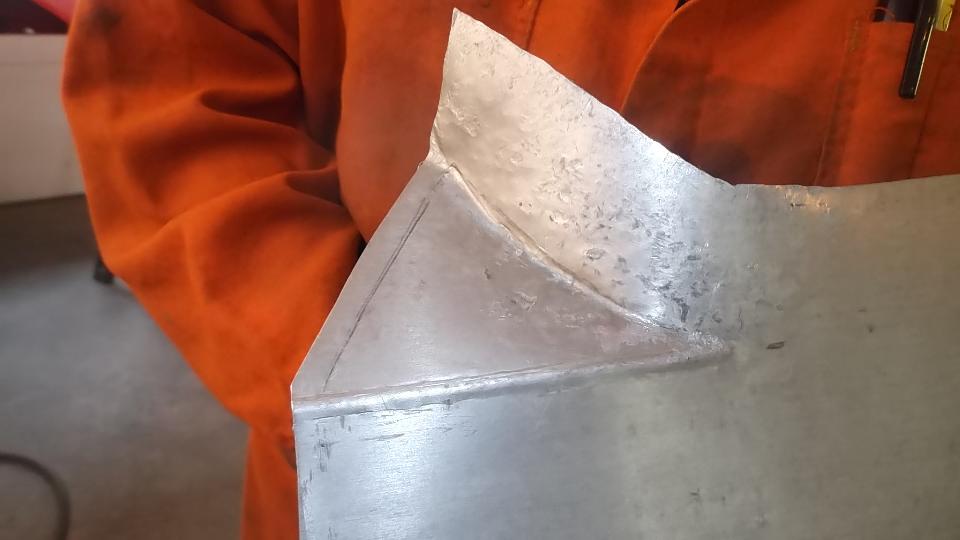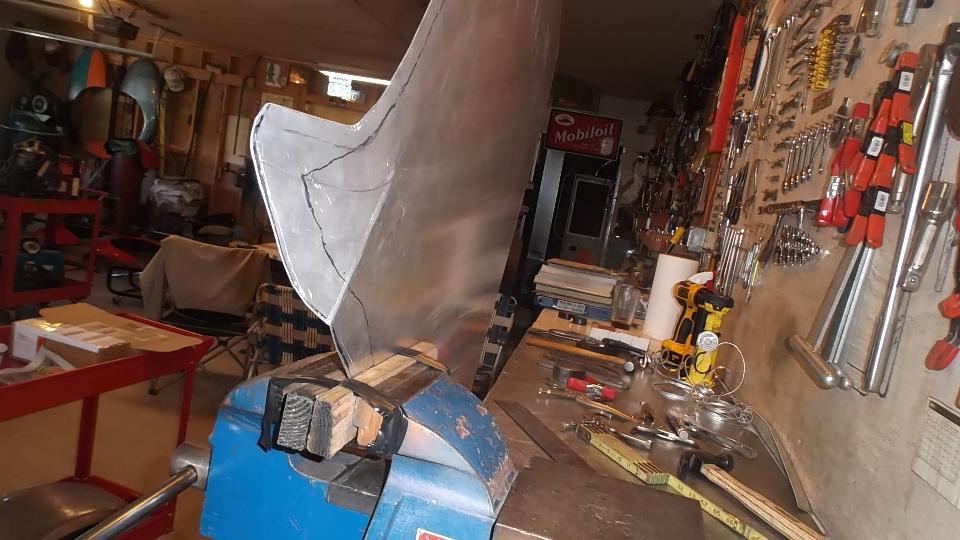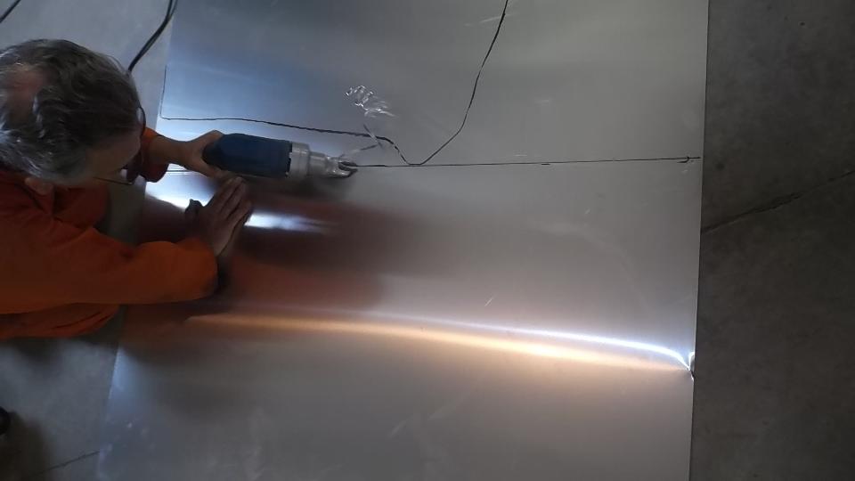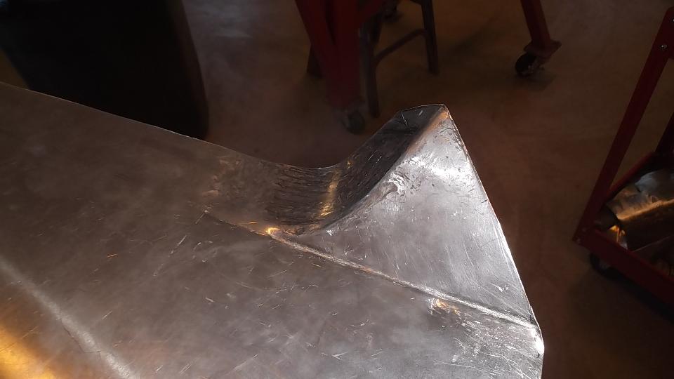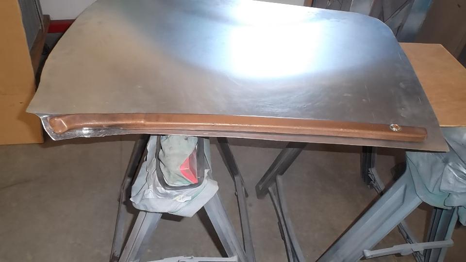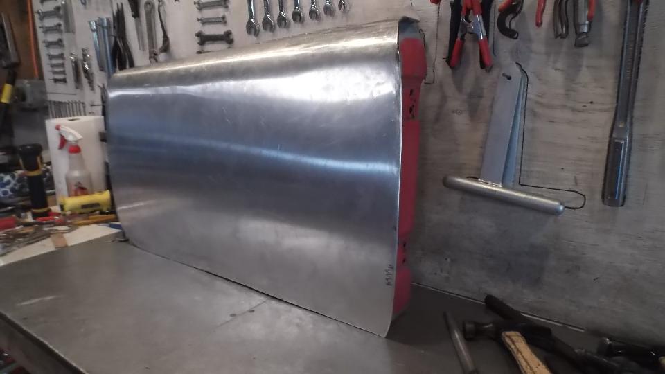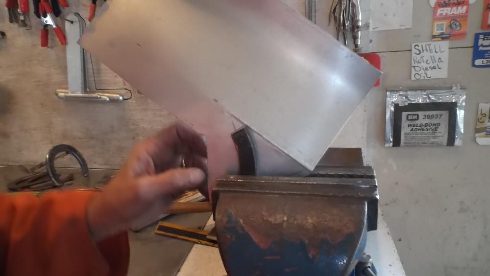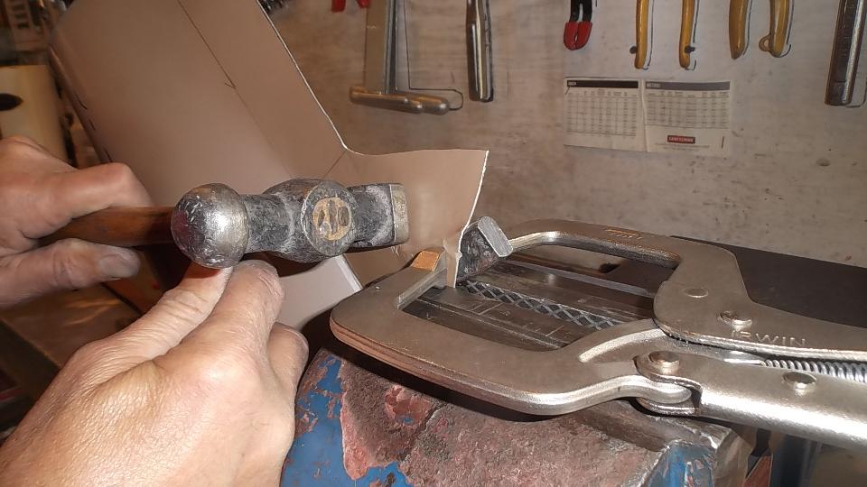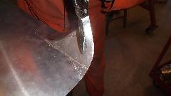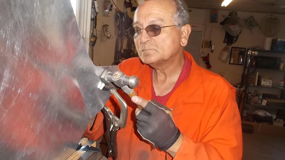 Then some artistic work rolling, folding, and hammer stretching a piece of aluminum as a practice piece with intension of making a new door skin.