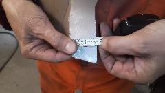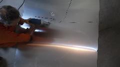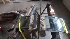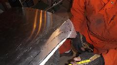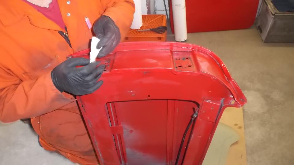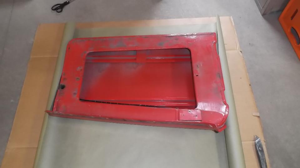 Then it was time to remove the original door skin. Simple process, just grid through the folded edge of the door skin until you see a hair line crack, and the folded flange can be pulled off. Some people may successfully un-bend the flanges by repeatedly annealing the metal as it is being pulled up so it wouldn't break. This one already had some broken flanges, and we were not trying to save the original door skin, so it was much quicker to remove the flanges.