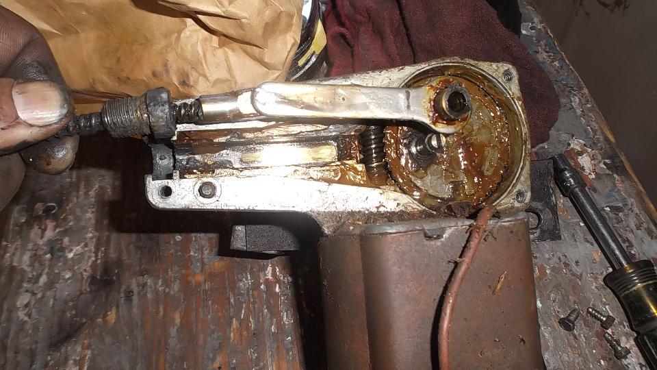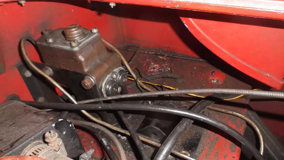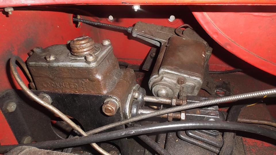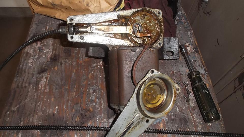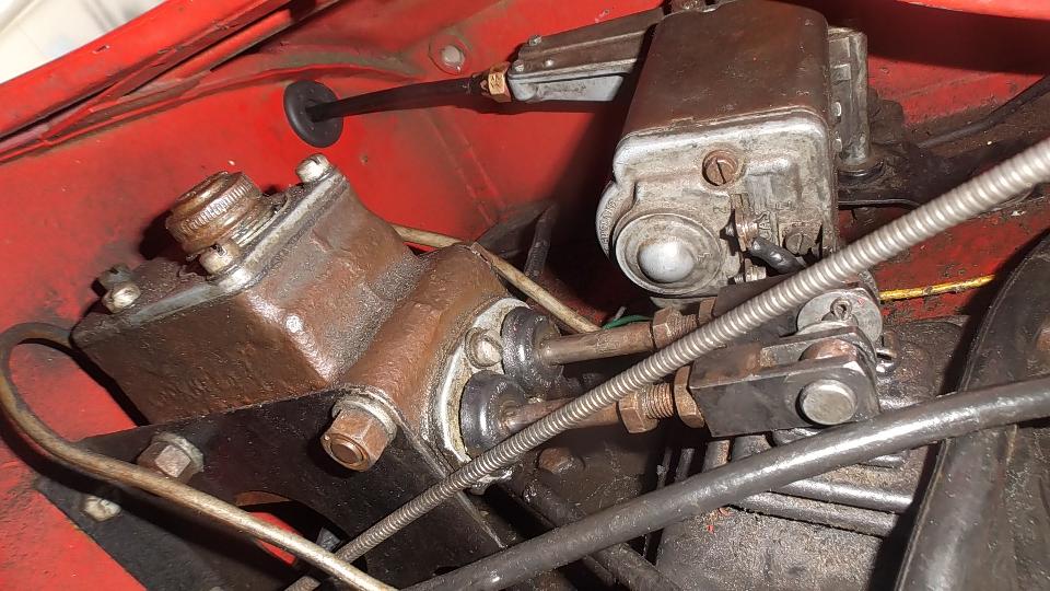 For the driven end fitting on the cable, the new one had too small hole so the connecting rod could not be assembled. Interference was only a couple thousandths of an inch, and a 9/32-inch drill made short work of that. With a little more knuckle busting the wiper motor was soon reassembled and reinstalled, and the pedal assembly and pushrods were back in place. The new wheel boxes will wait until after the body repaint.