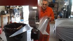 Measure everything carefully, and repeat as necessary during process, so we don't screw anything up to make scrap. We start at the top pointed corner and repeat all of the hammer forming processes as done previously in practice, learning to handle the much larger sheet as required.