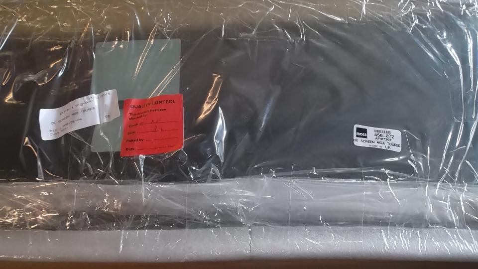 After total undressing there was found one chip in the outside layer only at bottom left corner (driver side for LHD car). I decided we will accept it and install it on a provisional basis, sending photo and note to the supplier. This is not a show car, so I don't mind the chip that will like show a little after installation, as long as it holds up physically for long term. Since my car makes a lot of miles, this may be a good test to see if such a defect will survive long term use.
