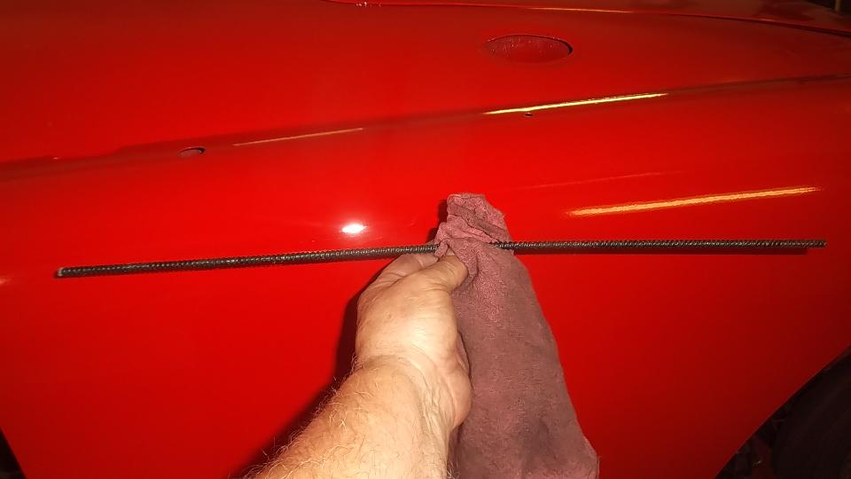 One last buffing of some paint chips and surface rust (it has to end now). Quick dry primer, please.