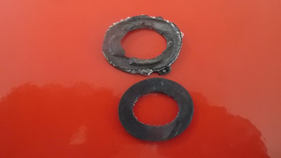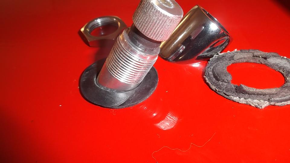 Having installed the new wiper drive cable on Sunday, I get to install the new wheelboxes today. Rubber gaskets supplied with new screenwiper wheelboxes are entirely the wrong shape, not to be used, because the gasket does not reach the front edge of the chrome bush. The only viable solution at hand was to re-use the old gaskets.