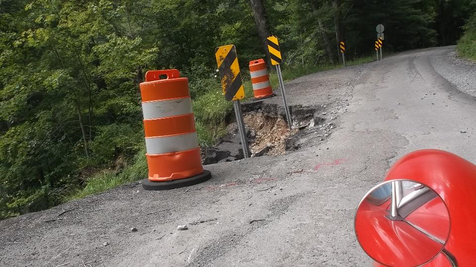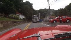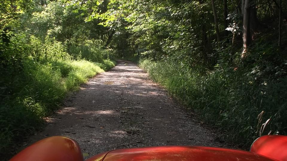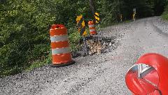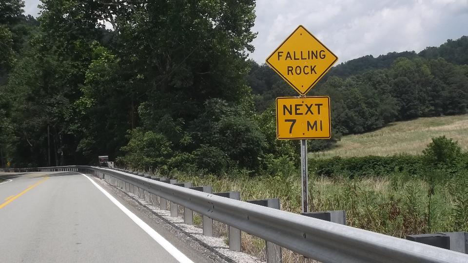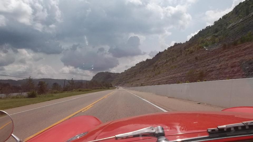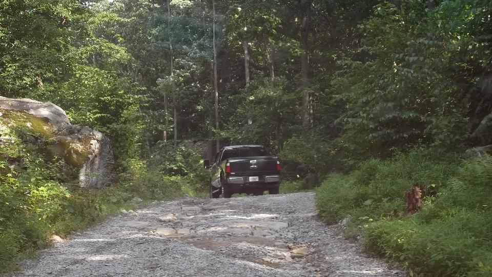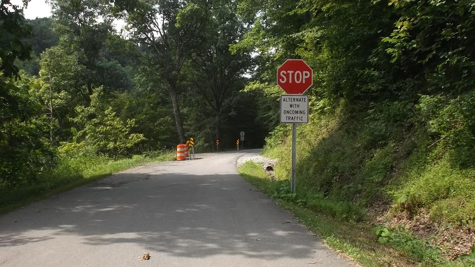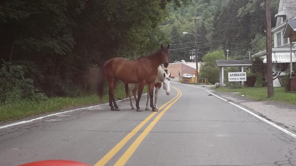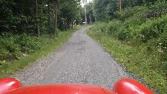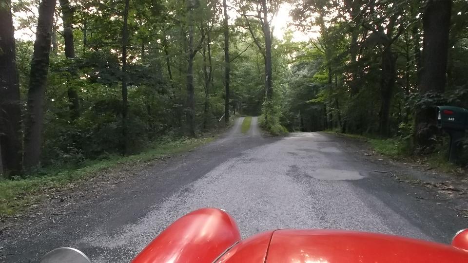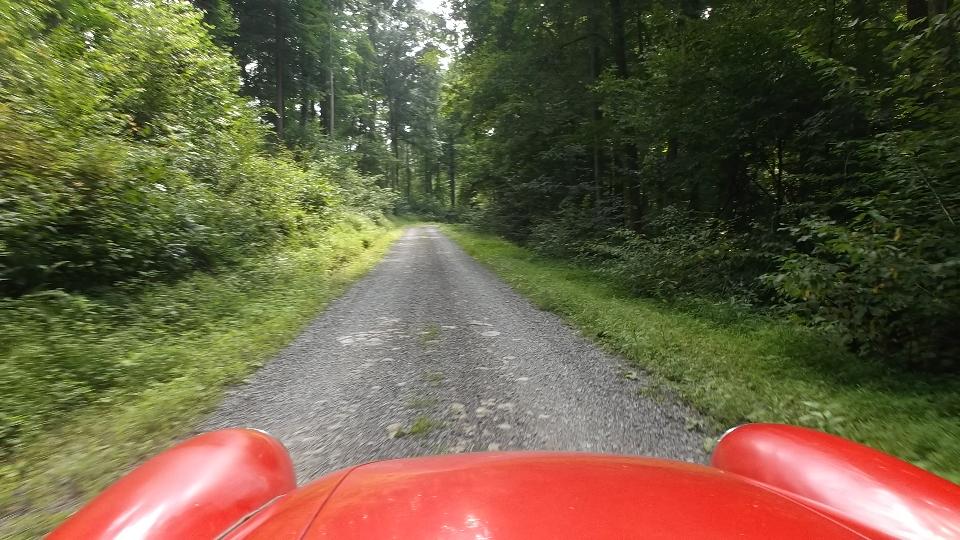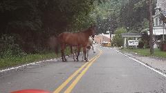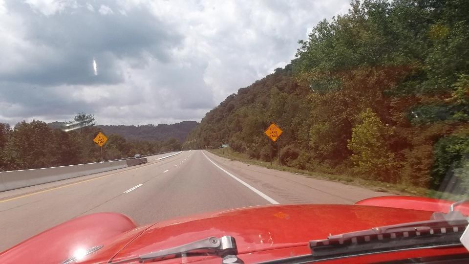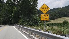 Running south from Wheeling on WV-88, then US-250. Two lanes, lots of 3rd gear hills, twisties going up and down We think it is unusual for a federal highway, but I suppose the locals see it as common hills. Somewhat tempted to try a few side roads, but the main highway is challenging enough. There were a few odd "obstructions" along the way, like a couple of free roaming horses, then a lowboy semi unloading a large tracked excavator in the main traffic lane. If it wasn't for pick-up trucks, the roads here would be almost empty. See Pennsylvania Avenue in Hundred, WV.