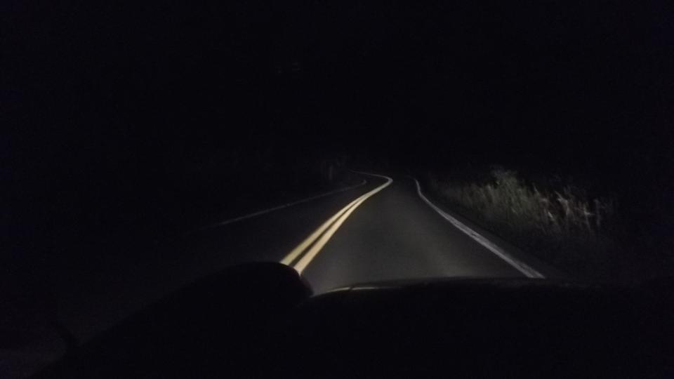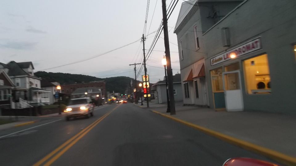 Washington Schoolhouse Road has a bunch of 2nd gear hills to go with tight twisting turns, short visibility, narrow lanes. Great frolic in the dark. This turns into a game of "scare the navigator". Shortest route is definitely not the quickest route to destination, but it got us into Weirton, WV. From there it was mostly WV-2 south along the Ohio River into Wheeling where we stuck for the night, where WiFi doesn't work at McD's.