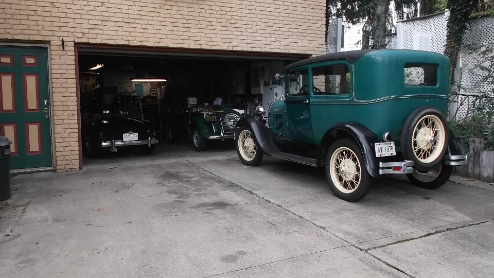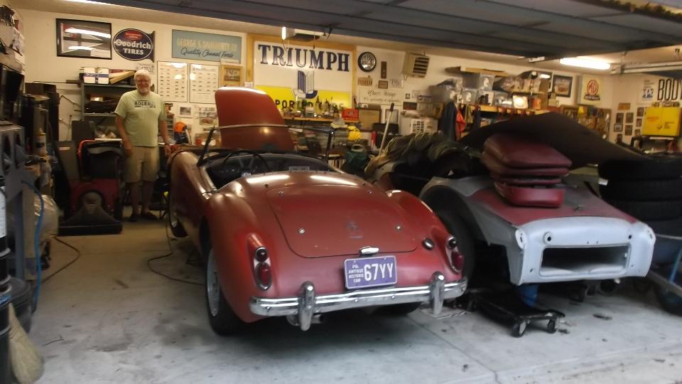 The addresses span three streets and two garages (back to back). Prime instigator with the home garage is Daryl Lutz. This is facing a much larger pro-shop type garage with a lift. We meet a dozen or so MG enthusiats with several driver cars in attendance, several more being worked on and many more in storage. It is not officially a club, as yet. No club name, no newsletter or web site. And yet these guys get together every Tuesday evening to work on their MGs (and a few other Little British Cars). With all these tech sessions going on they put a lot of formally organized clubs to shame. Come on, guys, give it a name.