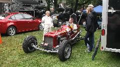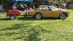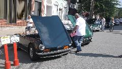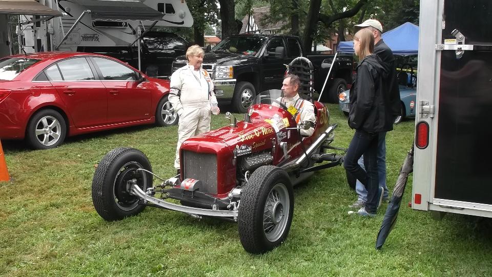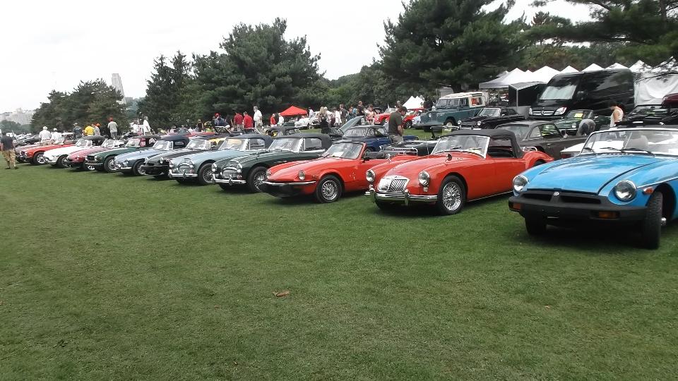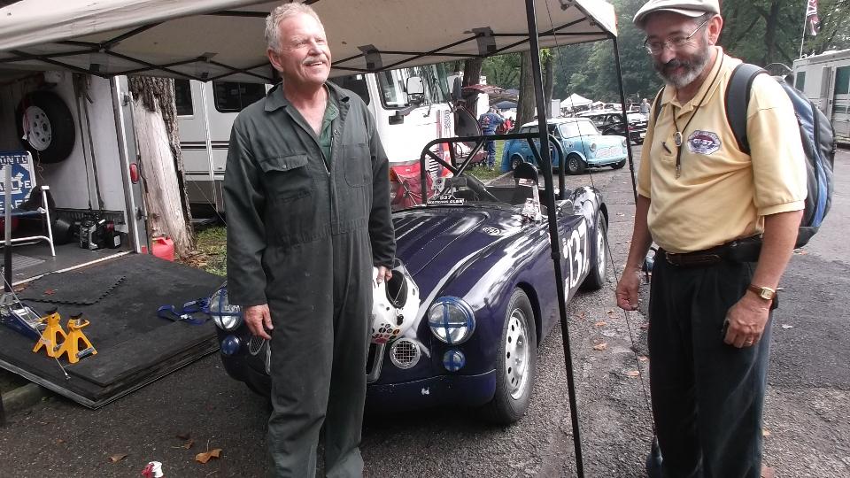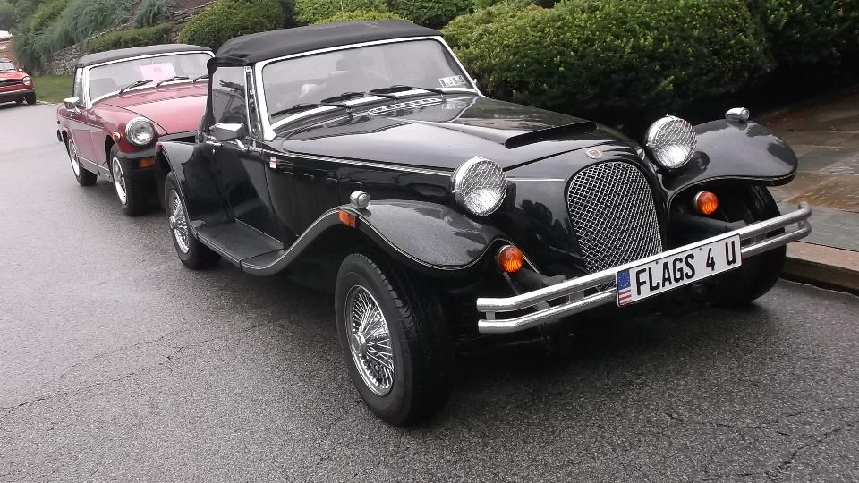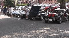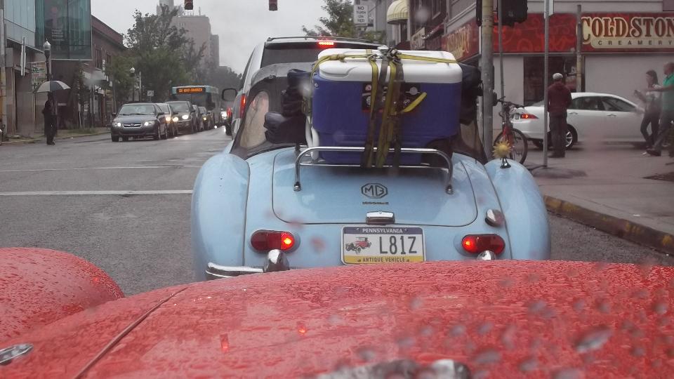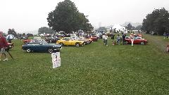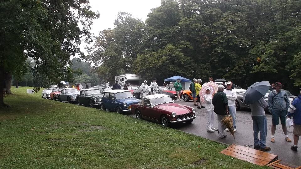 After more than a week of anticipation we arrive at Pittsburgh Vintage Grand Prix, all set for the British Car Show (along with lots of other car shows in the same place). With all the rain, local authority doesn't want to let us park on the golf course until it stops raining, so we have more than 100 British cars crammed into a local street for a few hours. About noon we finally get moving onto the show field where it will of course rain some more, like drizzle for the rest of the day.