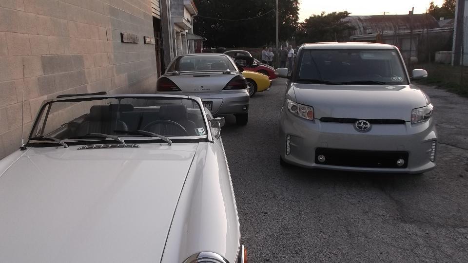 We had time then for a casual lunch and a few lawn games before a short drove to Blairsville, PA, for a Cruise Night, parking the British cars on the street with lots of other interesing rolling stock. Then an evening sitting in McD's for the WiFi to catch up a few days, but not enough time to post picturees. Then time to get back to The Roadster Factory for the late night bonfire.