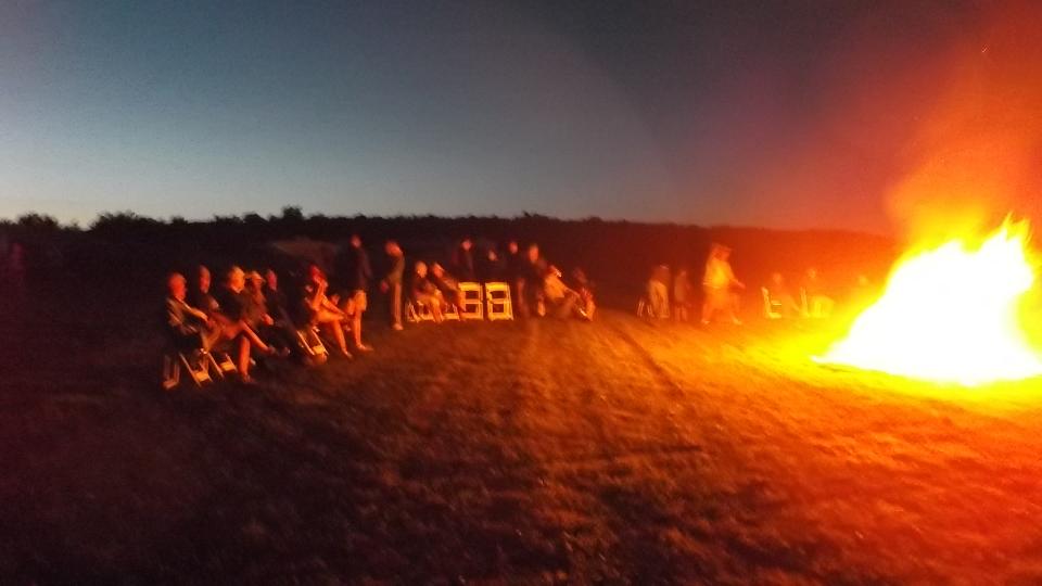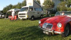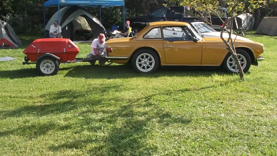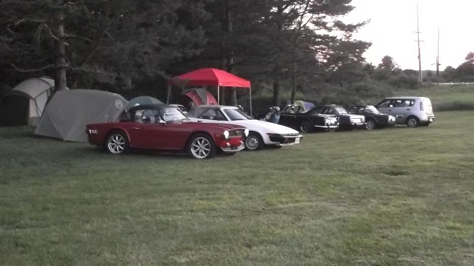 The rest of the day was a treat, from noonish on, kicking round The Roadster Factory grounds socializing with lots of other British car owners, kicking tires, impromptu tech sessions, another things that British car owners do in the presence of a hundred or so other British cars and their owners. Night fall brought on a large bonfire and a "Bed sheet Drive-In Movie". Sometime after Midnight we finally hit the sheets.
