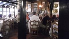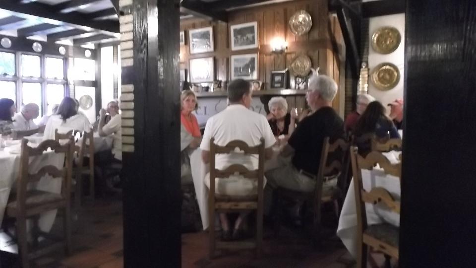After the car show we had dinner at The Coventry Inn. Initial plans were for about 100 people (expecting a small turn out), but increased attendance required considerable overflow onto sidewalk dining. After dinner the car show awards presentation was in front of the Inn, rushed a bit by rain and a collective hustle to cover the cars. After some cars left, the rest had to be moved to parallel park so the street could be opened for traffic. Then we had a brief respite back in the Inn, followed by a 3rd floor screening of the movie "Rush" (directed by Ron Howard) about Formula 1 racing. About 10:30-pm, rain stopped long enough for the trip back to The Roadster Factory. Big bonfire was roaring, but sprinkles and a second threatening storm caused us to park the car, button up the tonneau cover, and duck into the tent for the night. Good timing as it rained gently half the night with sun in the morning to dry things out, and we left the top down (tonneau cover on during the rain).