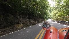 After a good sleep in and quick breakfast, it's time for the Mountain Road Tour and Poker Run. Something like 70 miles driving on nifty little blacktop roads in the hills with a few stops at convenient shops to pick a poker card. The roads were nothing new, actually rather tame compared to some of the short cuts we have been running in recent days, but it was a pleasant cruise in the woods.