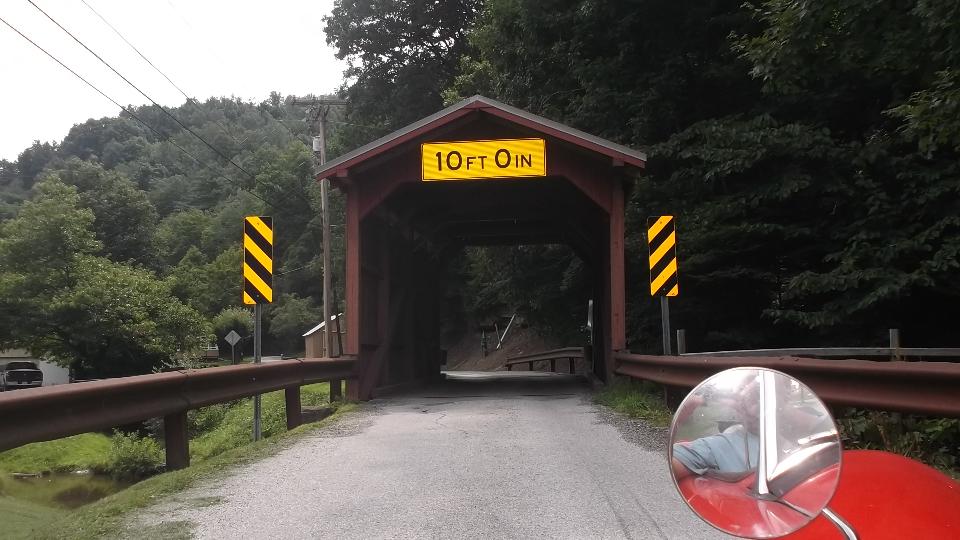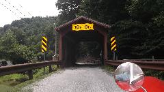 Near Hundred, WV (within a mile of where we passed a couple weeks earlier), a side road (county 1/3 named Rush Run) has a nice one-lane covered bridge (with no name). Having crossed the bridge to get the pictures, I was curious where the road might go. Just a mile or two on navigator calls it "wrong direction" (south again) and insists on going back to WV-7. Shame, as it was just getting interesting.