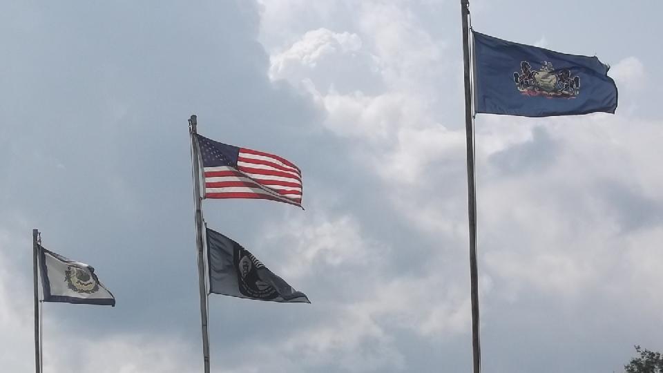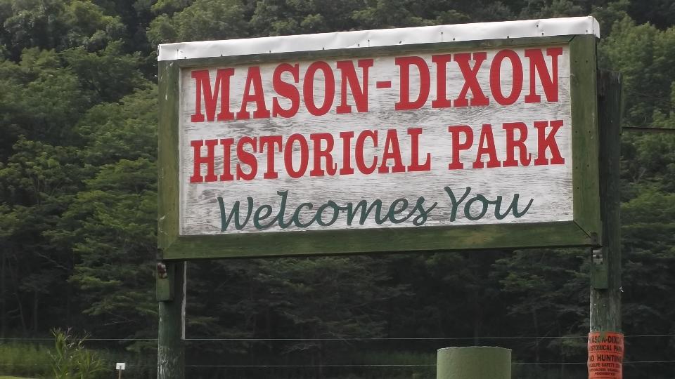A little farther on WV-7 is named Mason-Dixon Highway, with good reason. It is routed very close to the Mason-Dixon Line, division between North and South during the Civil War. There is a lot of history here, including this historical park, complete with signs prohibiting metal detectors and souvenir collecting. I will have to research what the lower three flags mean.