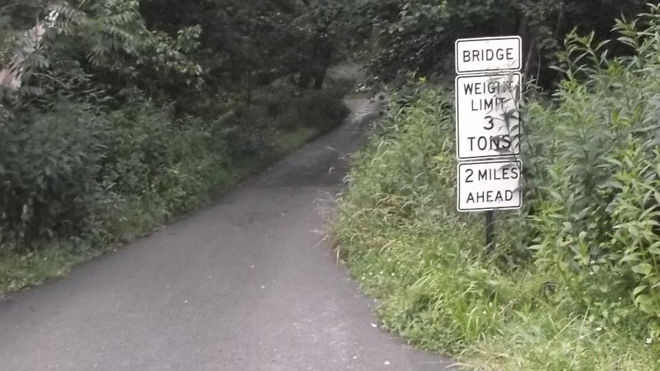 There is also a little side road there with a sign saying "Bridge, Weight Limit 3-Tons, 2 Miles Ahead". I was curious about this as well, but after a couple tenths of a mile at 5-mph the navigator called it off.